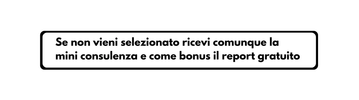 3. Selezione dei 3 partecipanti: Al termine della call orientativa mi prenderò del tempo per valutare, se riterrò che ci siano i presupposti giusti (motivazione, potenziale di crescita, impegno da parte tua), la tua azienda sarà selezionata per il percorso completo. Solo 3 aziende in totale verranno ammesse, così da garantirti massima attenzione e qualità durante le consulenze. Ti confermerò entro una settimana se sei tra i selezionati (in caso contrario, avrai comunque ricevuto una mini-consulenza utile e il bonus in regalo – nulla andrà sprecato!).